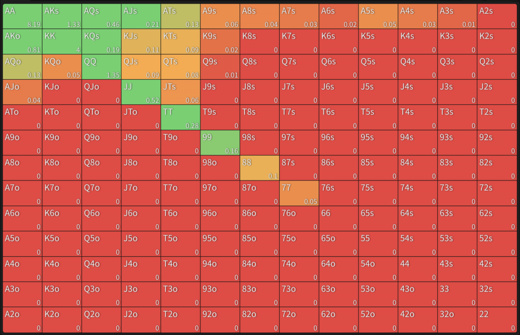 各ハンドの右下に書いてある数字がそのハンドのEV(BB)なんだ